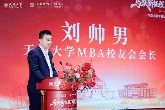 麻豆在线 MBA校友会会长、天津海棠盛源环保科技有限公司董事长刘帅男代表主办方致辞。他表示,正所谓“众人拾柴火焰高”,在学部领导的支持和校友们的共同努力下,天大MBA校友会将继续发挥平台优势,在新的一年再创辉煌 。