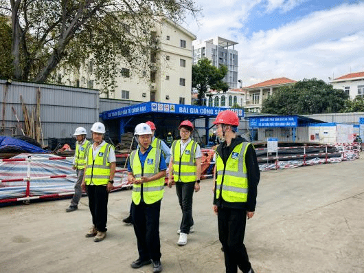 随后,实践队抵达中建二局越南H14-3项目部进行实地调研。该项目位于胡志明市第七郡高档核心区域,是一座集现代化与生态化于一体的高端房建工程。项目代表围绕属地化运营管理、绿色建造实施路径等内容进行了系统介绍与经验分享。
